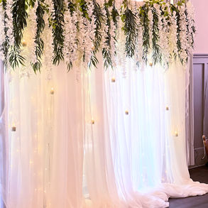 Cream Backdrop with Hanging Wisteria & Hanging Candles